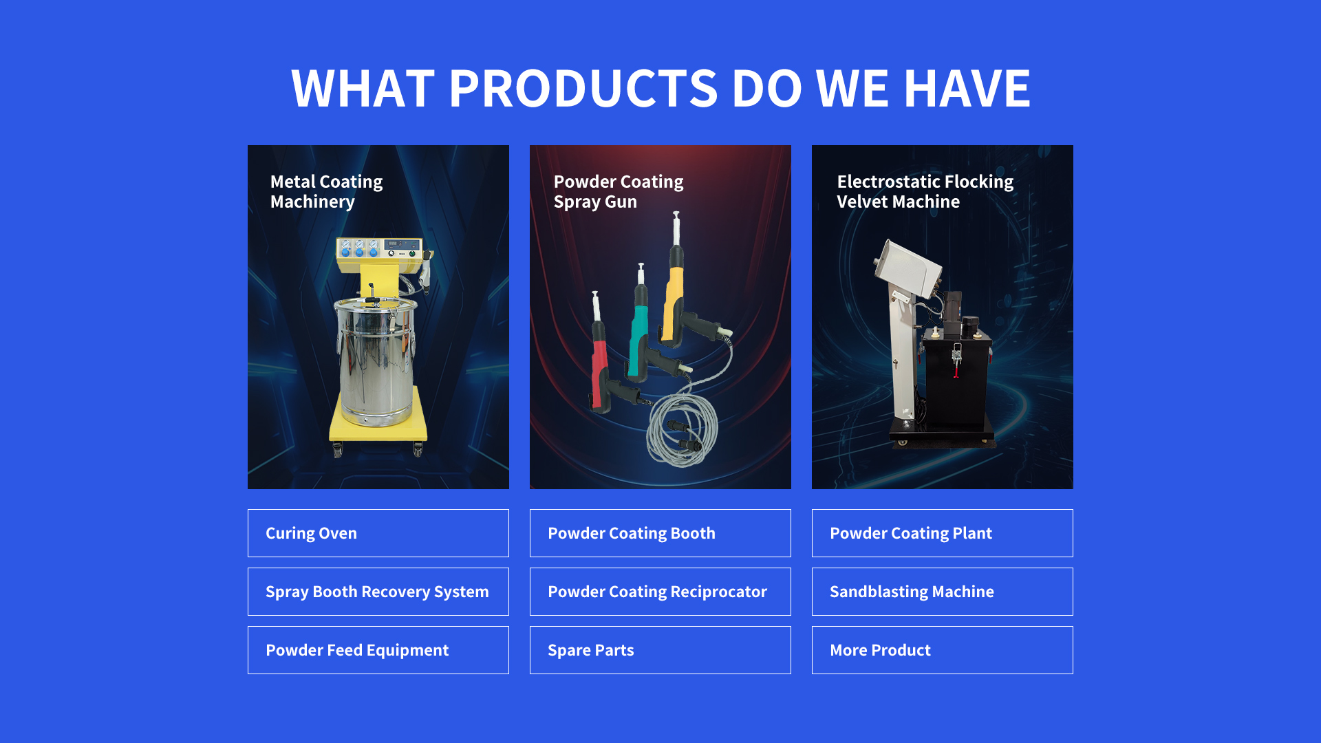 A Powder Spraying Paint Lines System integrates multiple stations for surface preparation, powder application, curing, and quality control. Key components include a pre-treatment zone (cleaning, phosphating), electrostatic spray booth, conveyor system, curing oven, and recovery unit.